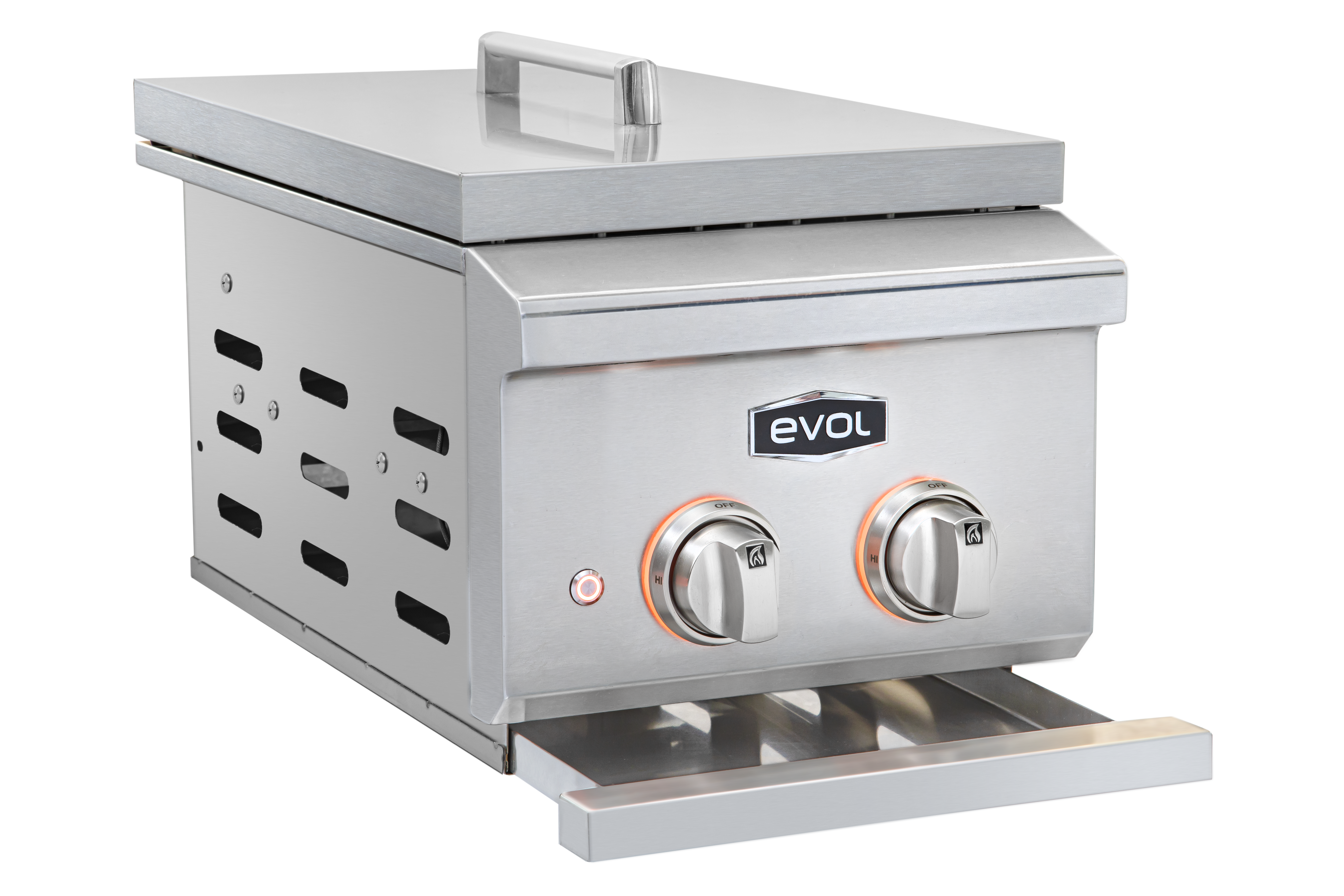 O Side Burner Evol é o complemento ideal para transformar seu churrasco em uma experiência completa. Com 2 queimadores tripla chama em latão maciço, este equipamento oferece uma potência robusta de 27.000 BTUs, garantindo que você possa preparar acompanhamentos com a mesma excelência que o seu churrasco principal.